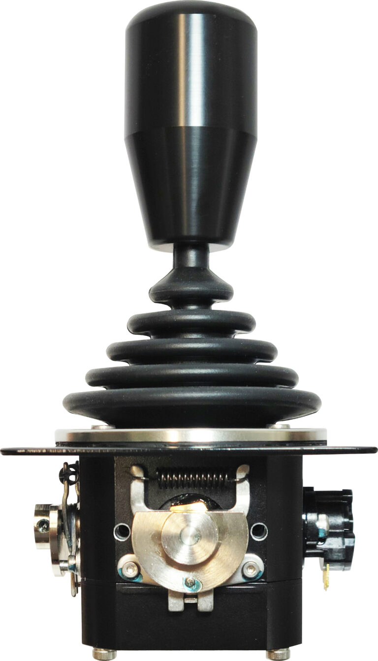 Multi-axis joystick 8.34″ handle height 45° deflection angle ( ± 22.5°) Spring return to center Cobra Head handle Circular deflection pattern 10K ohm precision potentiometers – all axis Three momentary switches (two illuminated, one trigger) Panel mounting bracket Protective rubber boot (IP65 rating above panel)